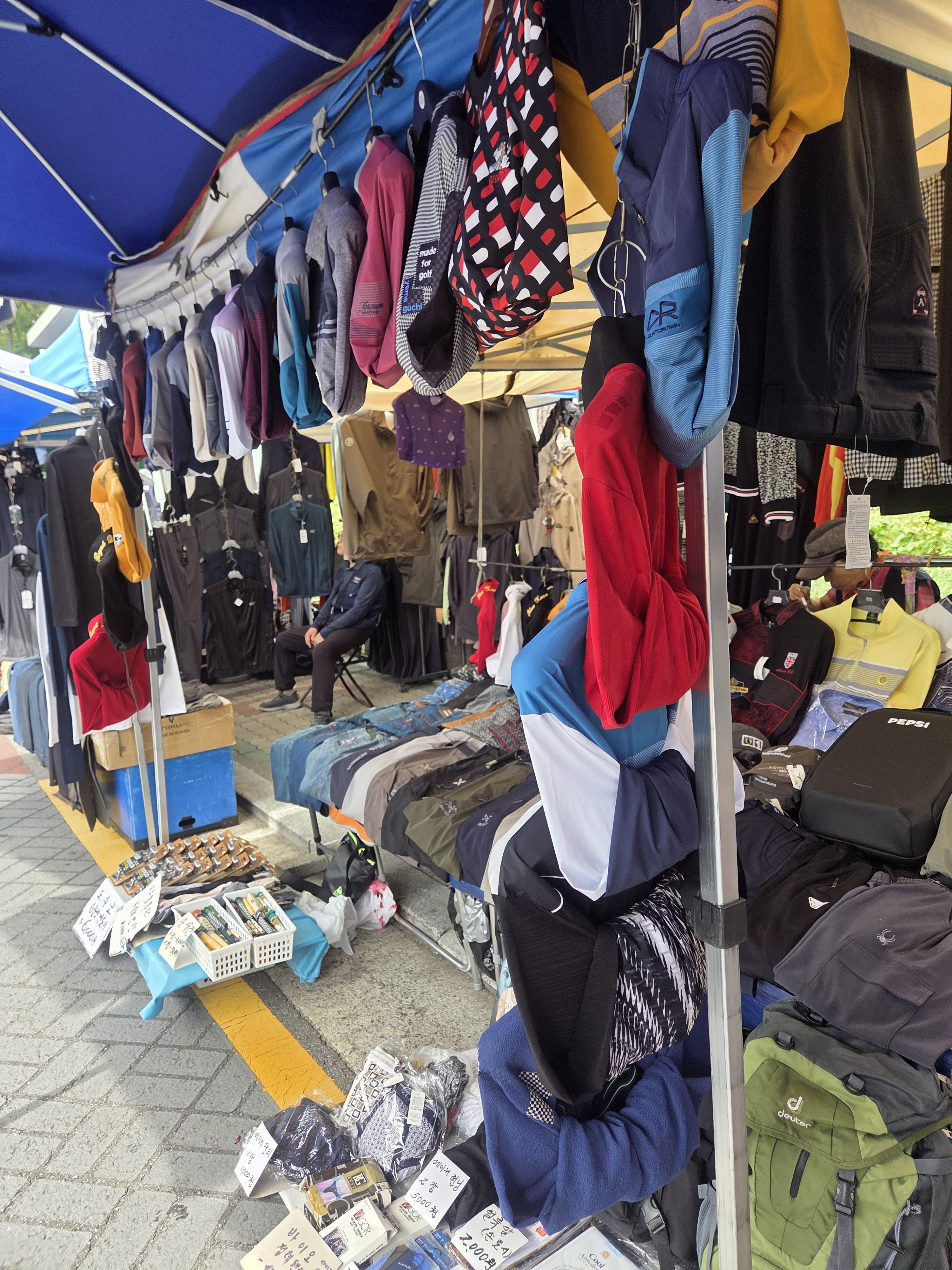 바람에 흔들리는 천막, 알록달록한 가을 옷들, 구수한 먹거리 냄새가 서울풍물시장 야외 장터를 가득 채워요.