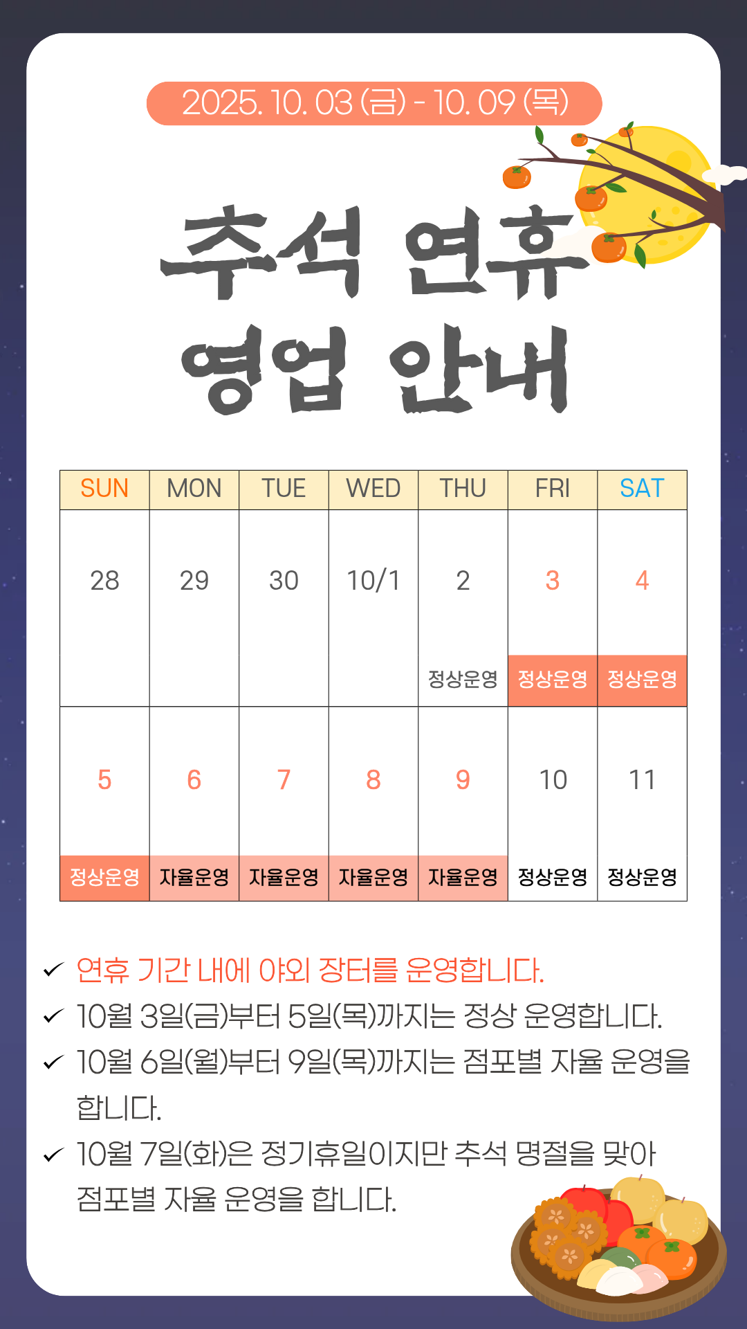 ● 추석 연휴 영업 기간