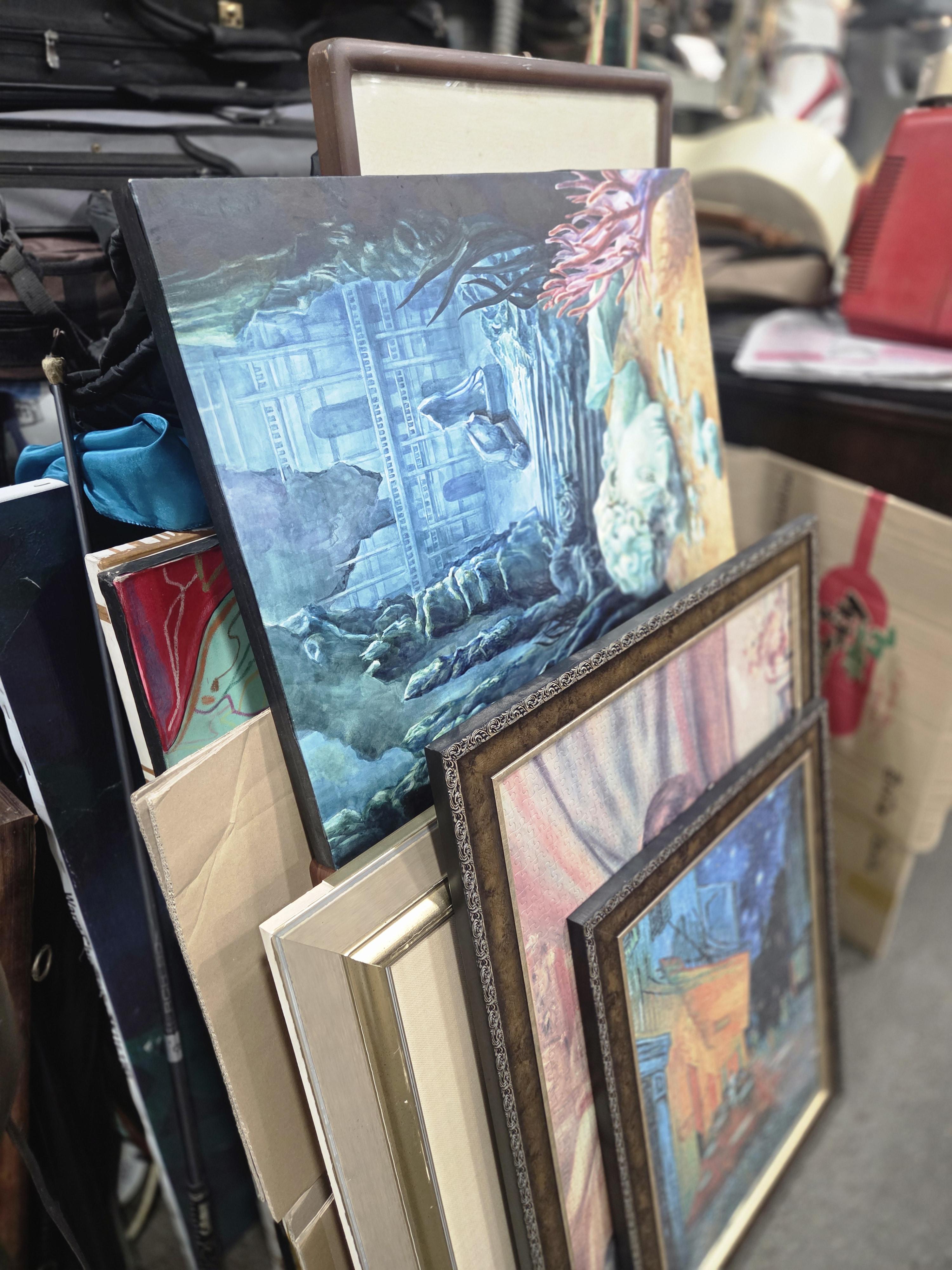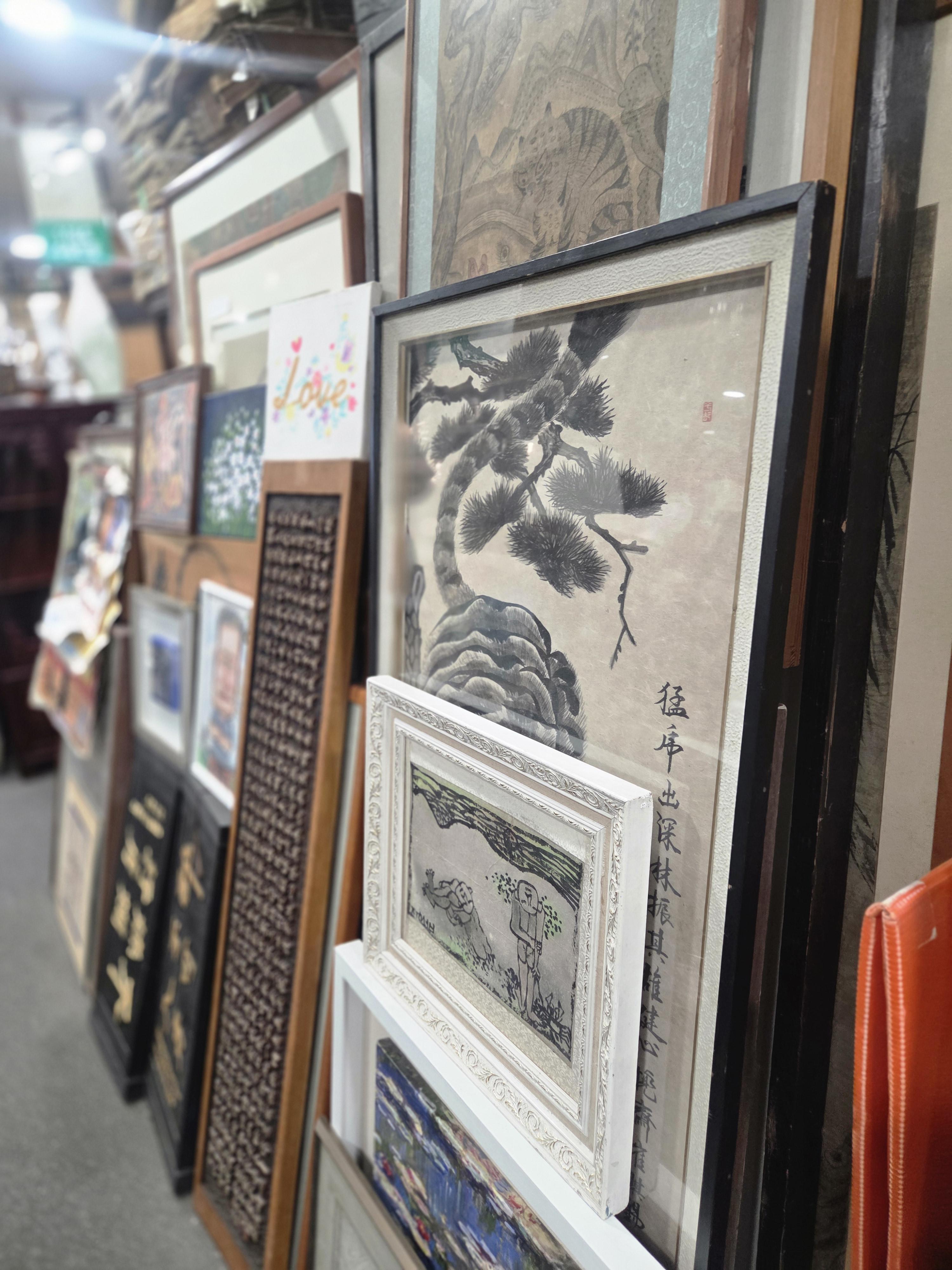 시간의 흔적이 스며든 오래된 액자들이 골목을 따라 조용히 늘어서 있습니다.