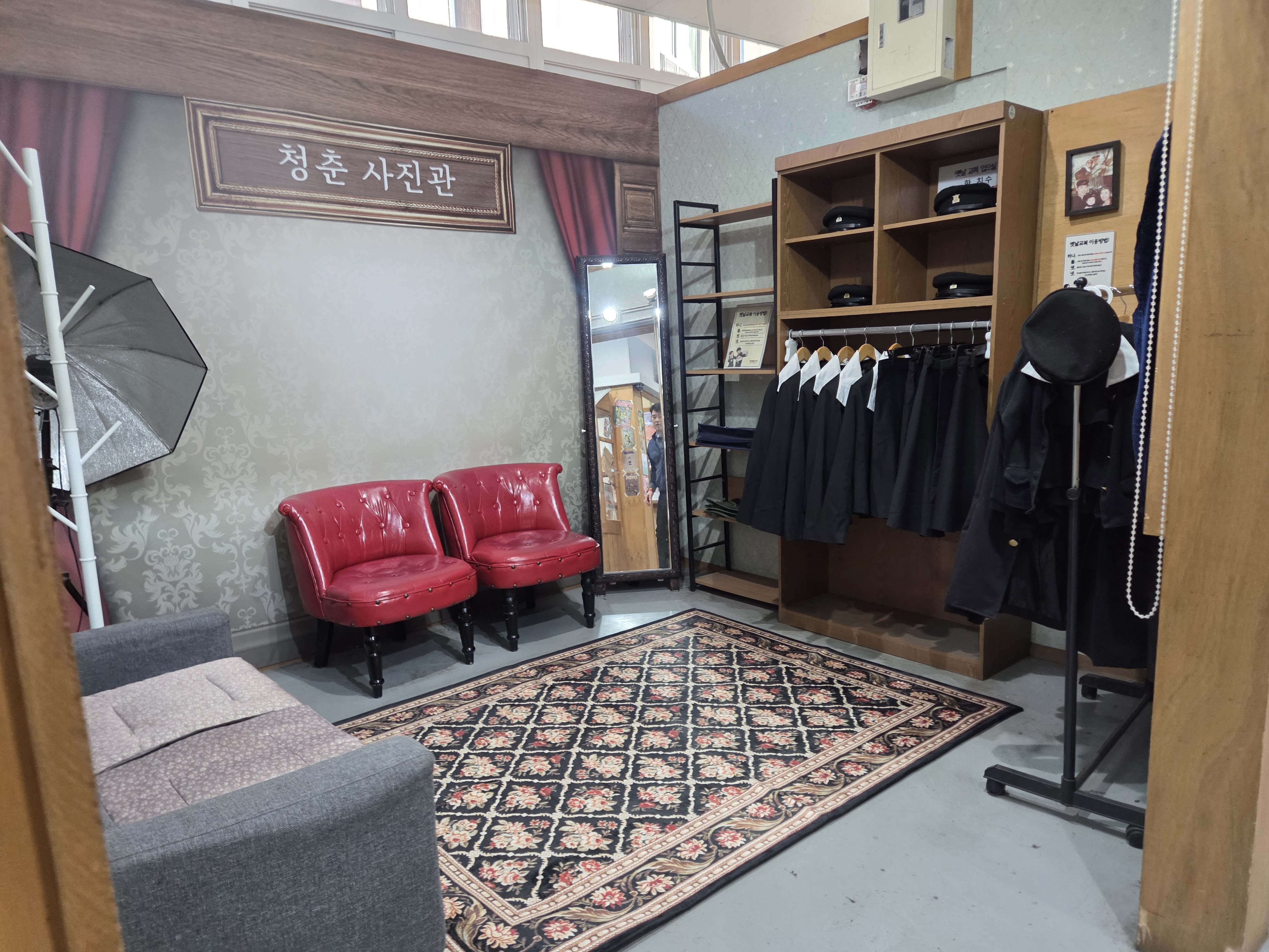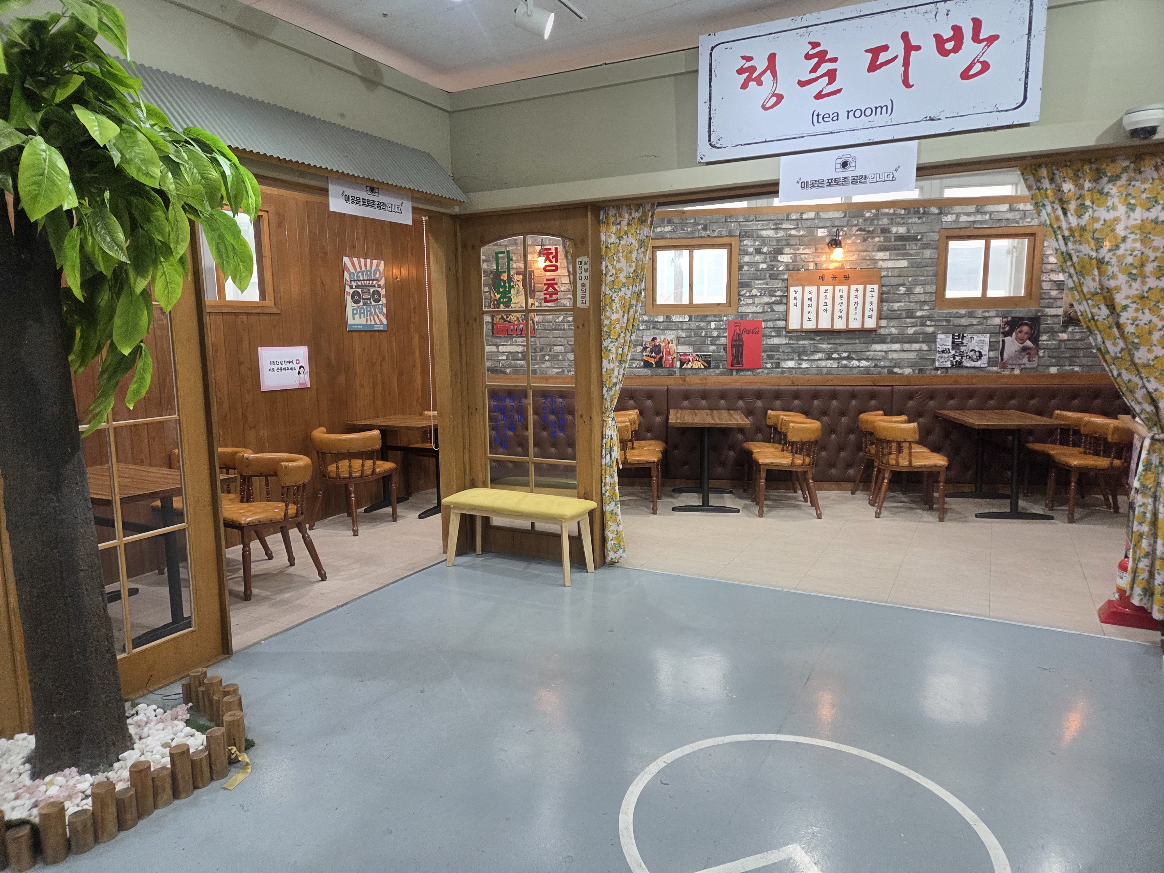 LP판, 옛 간판, 추억의 소품들이 가득해 마치 시간여행을 하는 듯한 느낌을 줍니다.