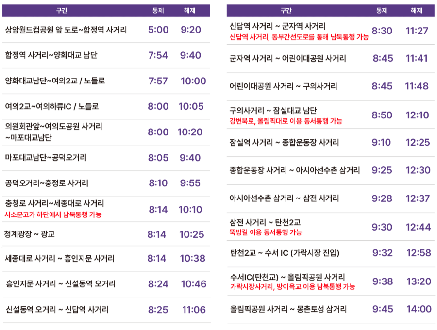 292[안내] 마라톤 교통 통제 (9/7)