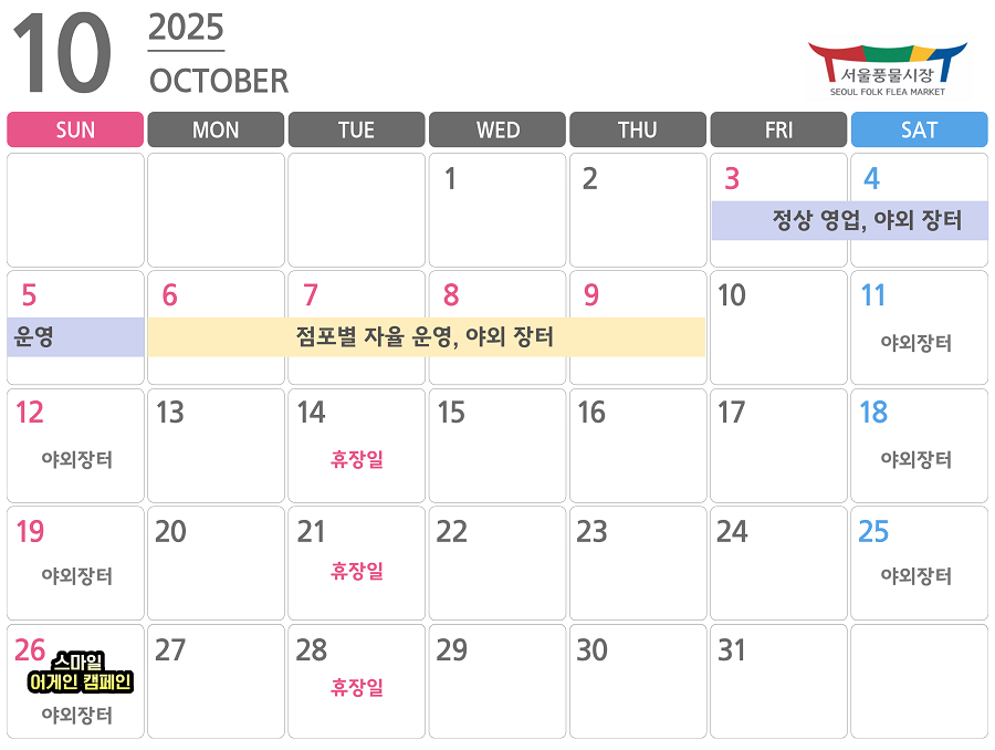 10월 26일(일) 서울풍물시장에서 진행!