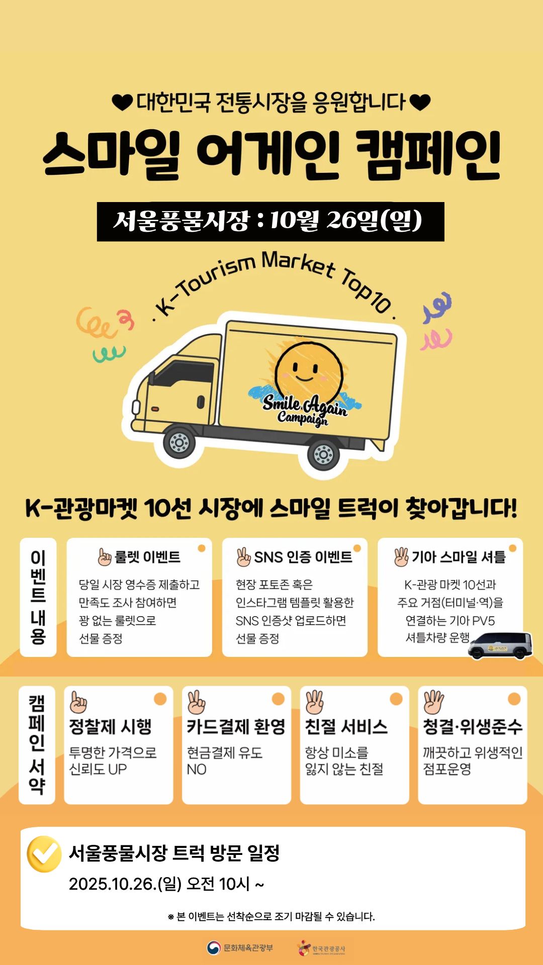 K-관광마켓 10선 시장에 스마일 트럭이 찾아옵니다.