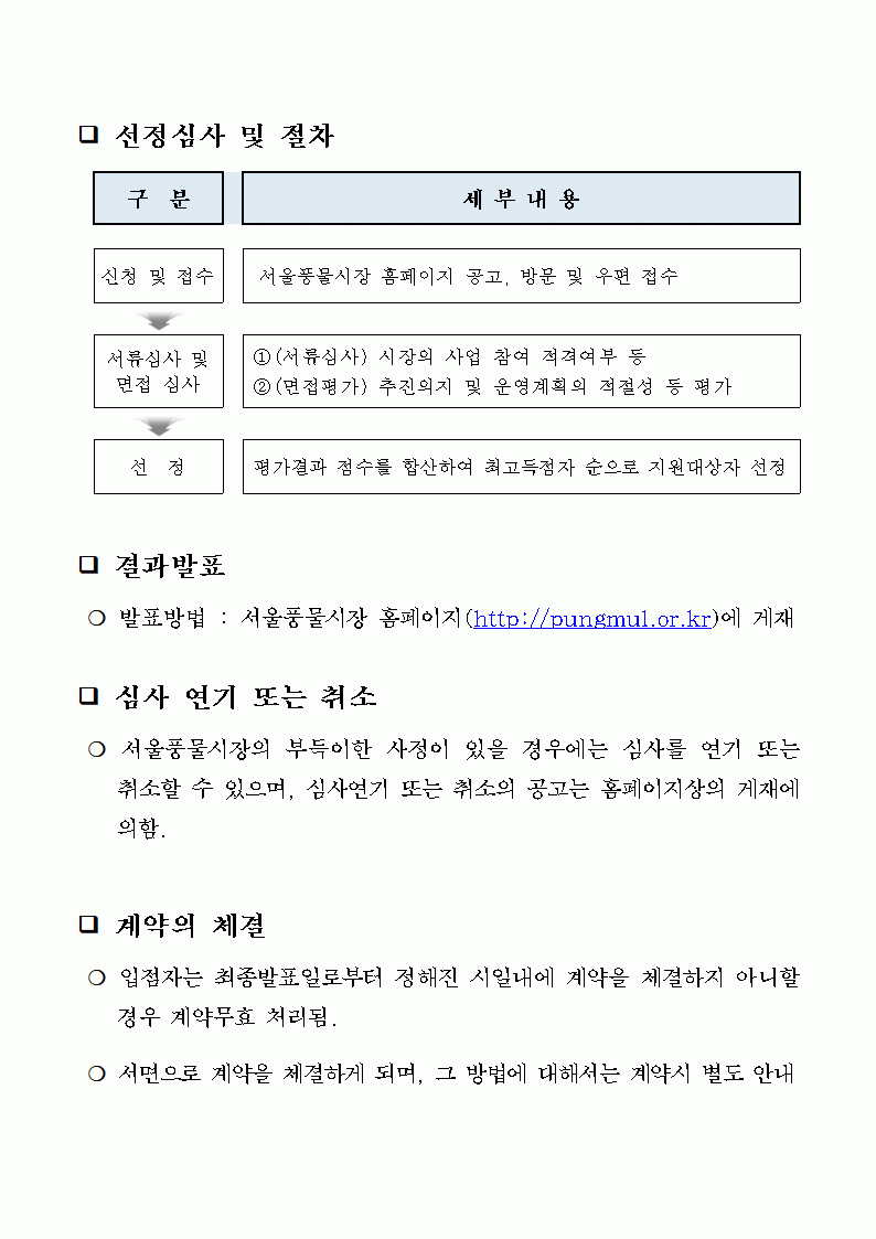 서울풍물시장 청춘 1번가 입점자 모집공고