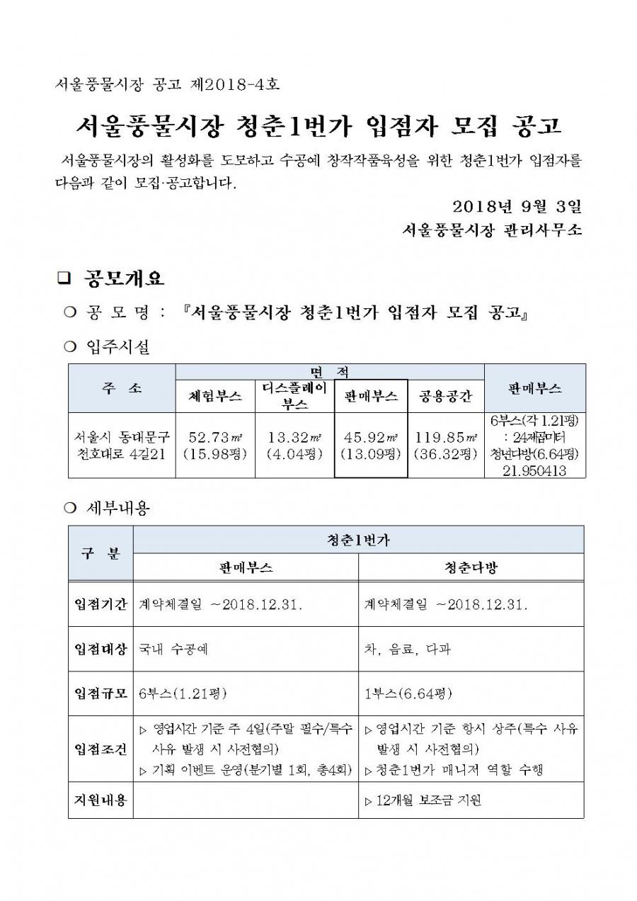 서울풍물시장 청춘 1번가 입점자 모집공고